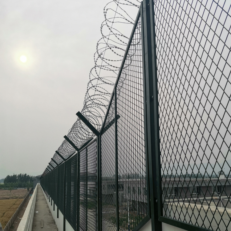 監(jiān)獄護(hù)欄主要是選用高強(qiáng)度的刀片刺網(wǎng)與一般防護(hù)網(wǎng)的別離 ,由V型支架立拄,增強(qiáng)型焊接片網(wǎng),安全防盜聯(lián)接件和刀片刺網(wǎng)組成。下面來 了解